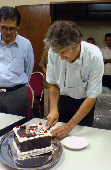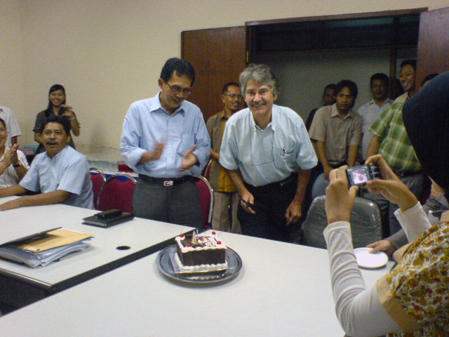 Anyways, entah apa karena Pak Aart kangen sama kita-kita semua atau memang senang usia bertambah satu angka, yang jelas wajah beliau kelihatan sumringah banget. Mungkin juga karena Pak Ismono (Kepala SNVT P2KP-PNPM Mandiri Perkotaan yg sekarang) hadir di acara, ya? Hehe..