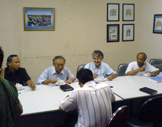 Kaget lho kita, begitu datang ke Ruang Rapat PMT, eeeh ada Pak Ismono sedang asyik diskusi dengan Pak Moel (Manajemen), Pak Leo (PPM), Pak Sunar (TL KMP UPP-3 yang baru), Pak Arief (advisory), dan ada beberapa orang lagi. Yang tadinya mau menyerbu makanan, kita jadi tertahan. Malu ah, sama Pak Is! Hehe..