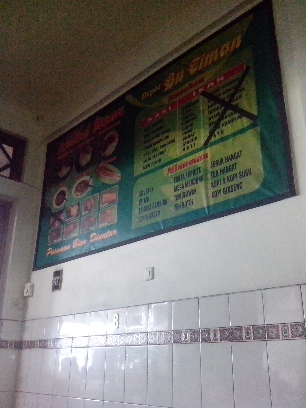 Namun itu semua terlupakan begitu saya tiba di rumah makan yang menghidangkan nasi krawu, makanan khas Gresik. Depot Bu Timan, namanya. Ia menyajikan nasi krawu, nasi rawon, nasi kare ayam, nasi bali bandeng.