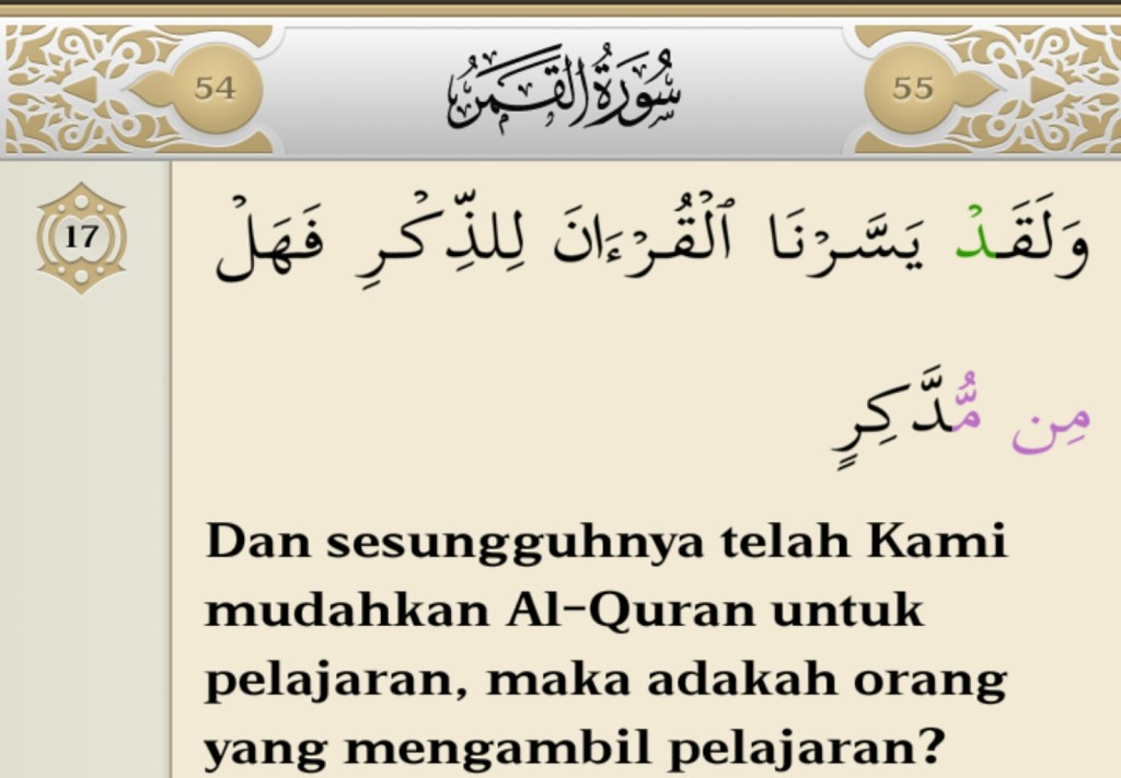 And We have certainly made the Qur’an easy for remembrance, so is there any who will remember? [Q.S. 54. Al-Qamar: 17]