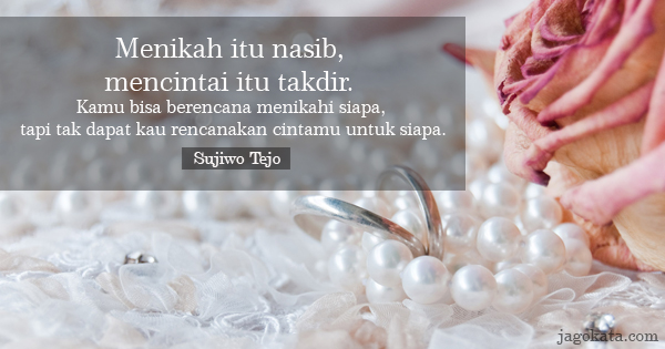 “Menikah itu nasib, mencintai itu takdir. Kau bisa berencana menikah dgn siapa, tapi tak bisa kau rencanakan cintamu utk siapa — Sujiwo Tejo”